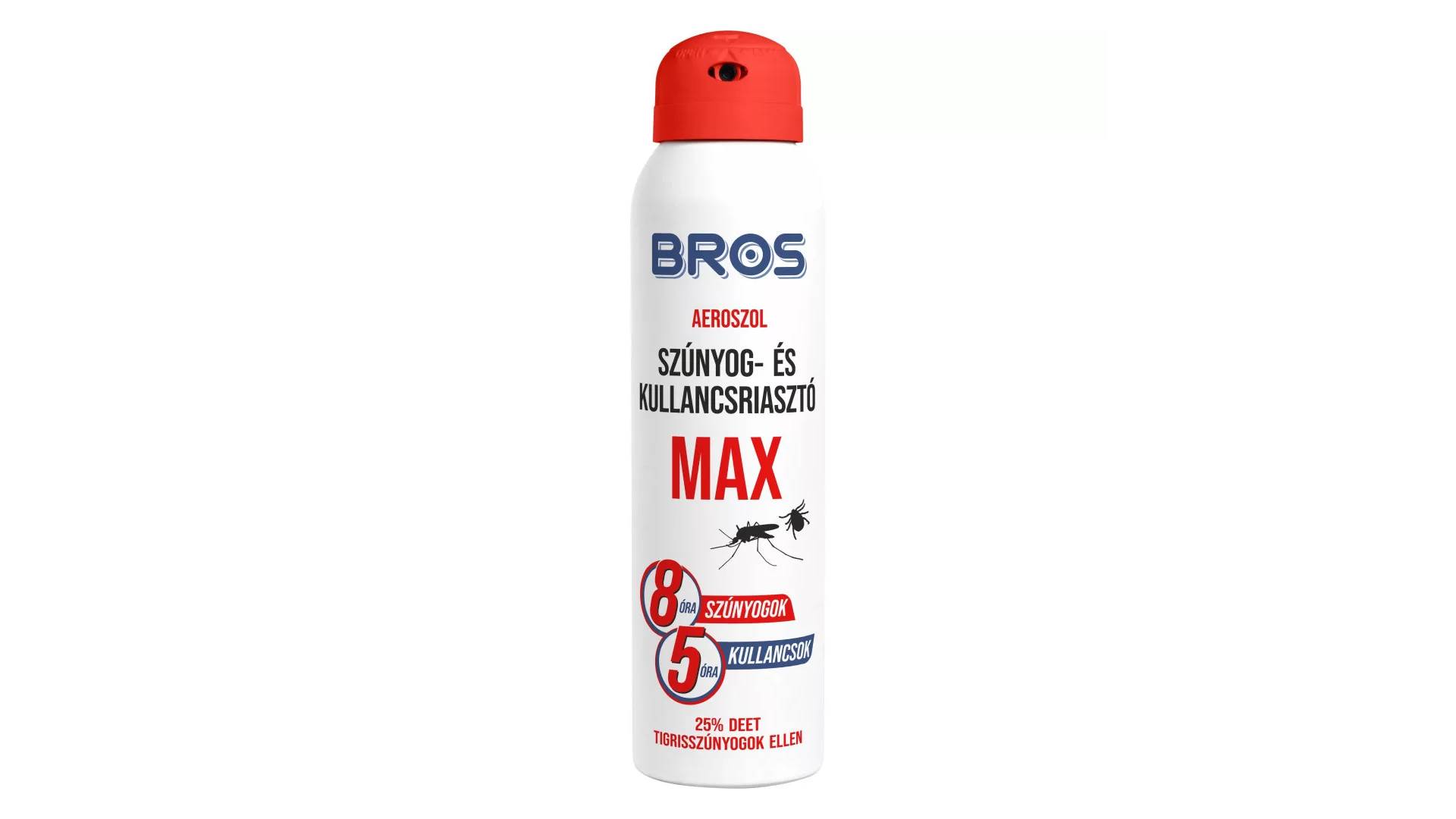 • A Bros MAX aerosol DEET (dietil-meta-toluamid) hatóanyagot tartalmaz.