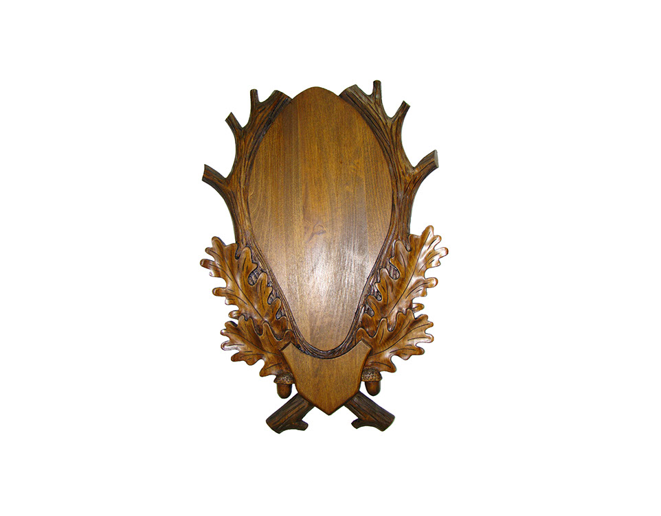 Hársfából készült szarvas trófeaalátét dámszarvashoz diószínű lazúrral kezelve.