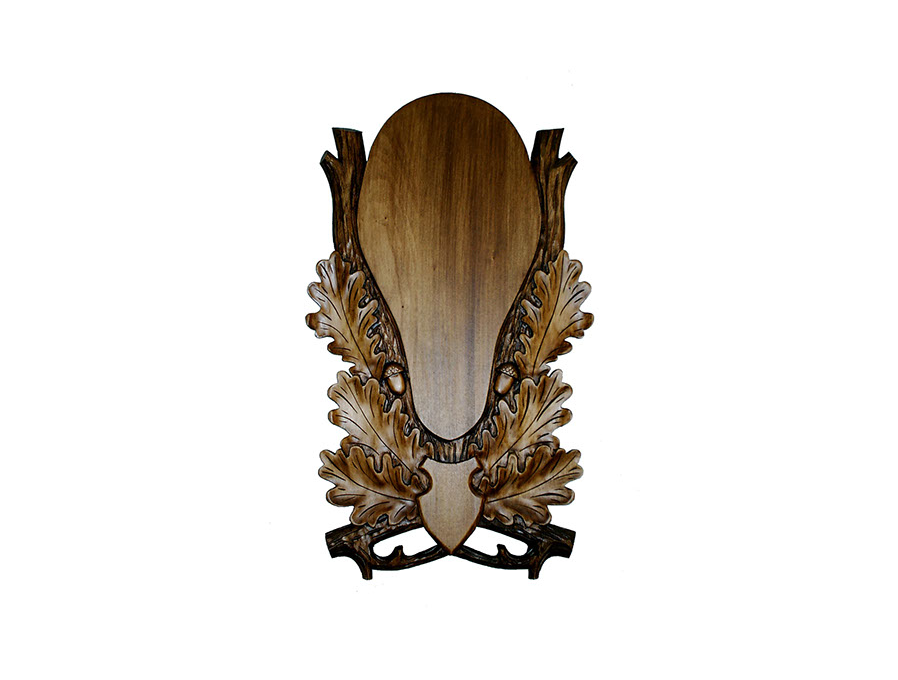 Hársfából készült szarvas trófeaalátét dámszarvashoz diószínű lazúrral kezelve.