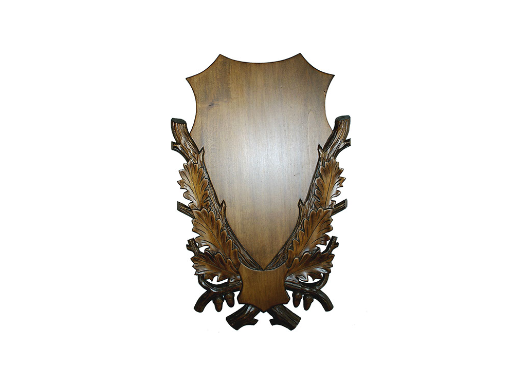 Hársfából készült szarvas trófeaalátét dámszarvashoz diószínű lazúrral kezelve.